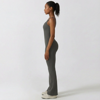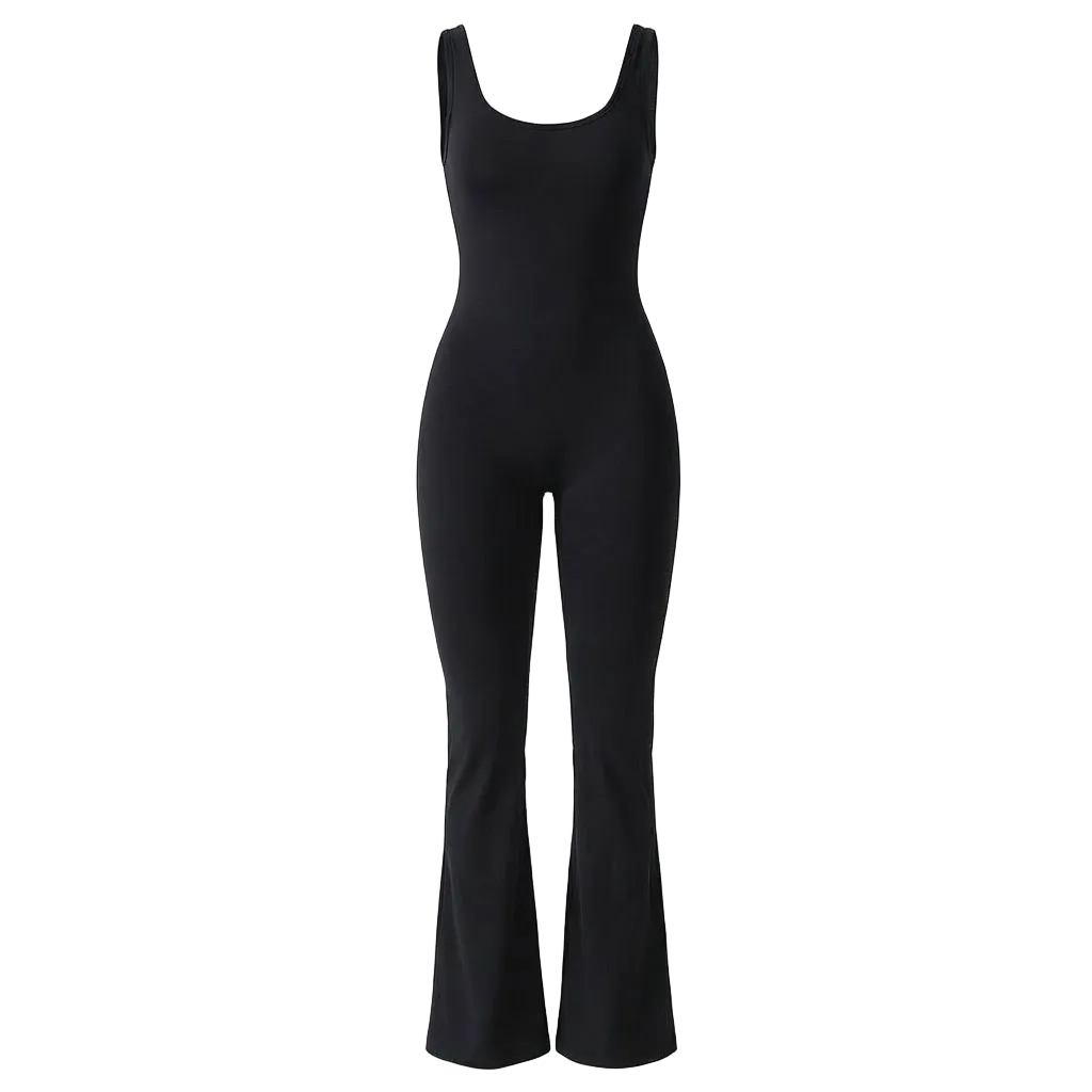 Light shaping through the torso provides a smooth, flattering fit, while the scrunch detail subtly enhances natural shape without restriction. The flared leg adds balance and freedom of movement, making this jumpsuit suitable for studio sessions, low-impact workouts, or everyday wear.