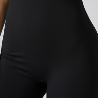 Crafted from a breathable nylon–spandex blend, the fabric delivers soft stretch with a lightweight, second-skin feel. Flexible recovery helps the jumpsuit retain its shape while allowing natural motion throughout the day.